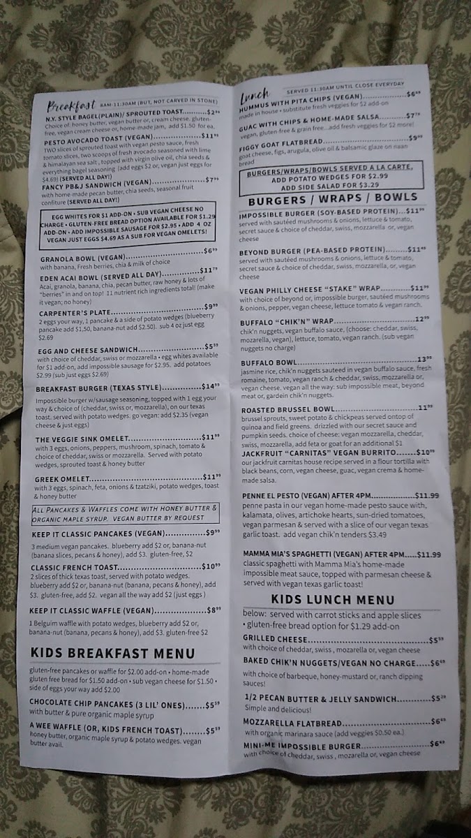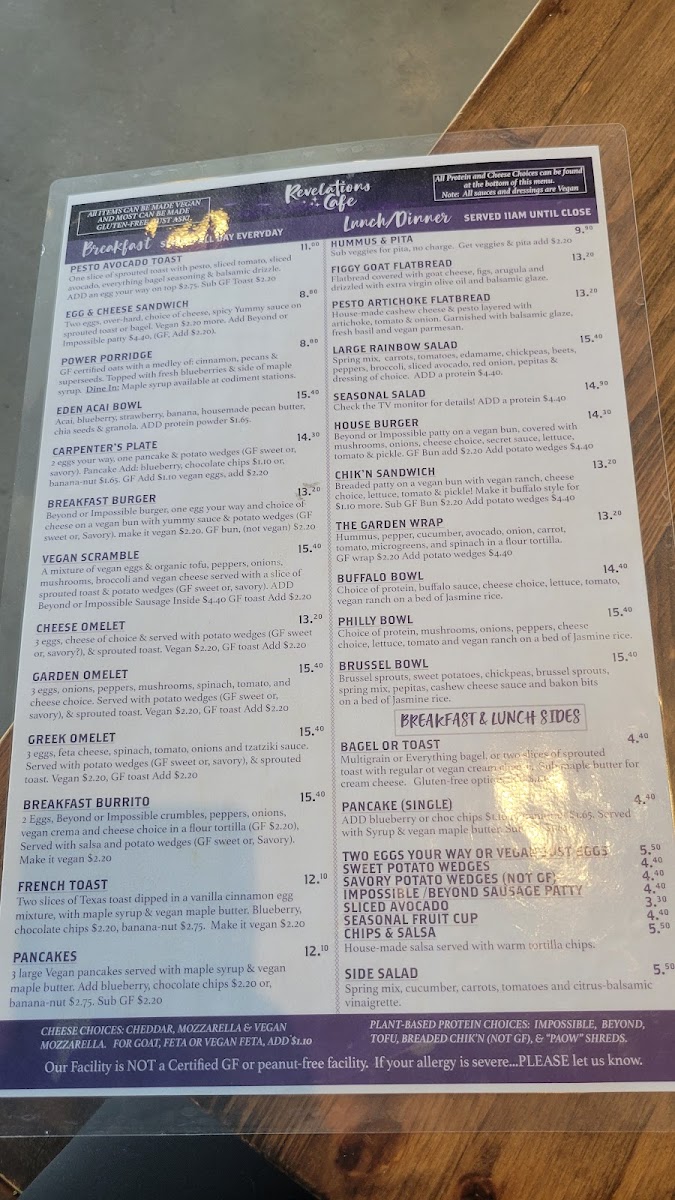 Our vegan pancake can be made your way! Plain, blueberry, banana-nut, and/or chocolate! It can also be made gluten free to accommodate your needs! Topped with powdered surgar.